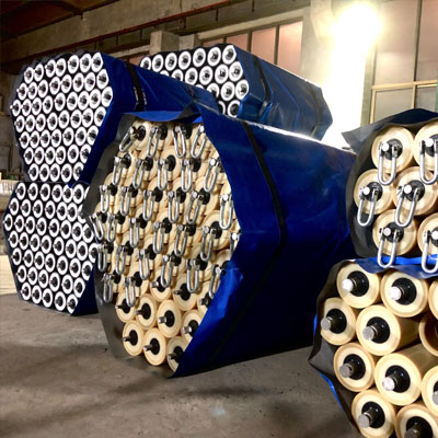 托辊是带式输送机的重要部件,种类多,数量大,可以支撑输送带和物料重量。它占了一台带式输送机总成本的35%,产生了70%以上的阻力,因此托辊的质量尤为重要。其有钢制和塑料两种。